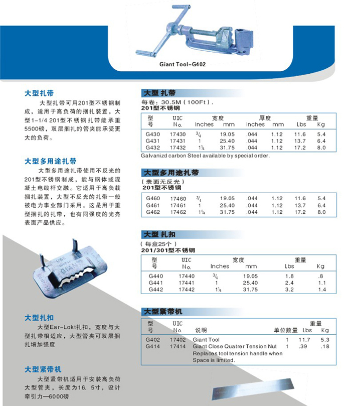 201材質大規格不銹鋼扎帶及扎扣